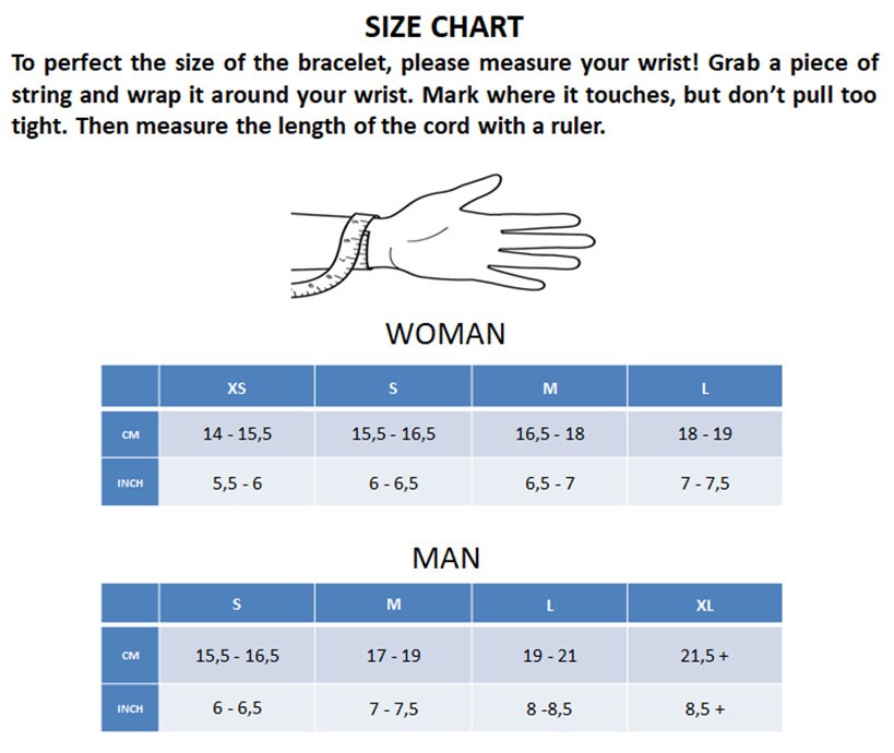 π Size: Please see the attached size chart. All bracelets can be adjusted to any size and be custom-made for you free of charge. Please send us your exact wrist measurement in a note for the seller at check out, or email us, so we can calculate the total length of the bracelet for a comfortable fit.